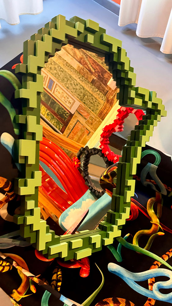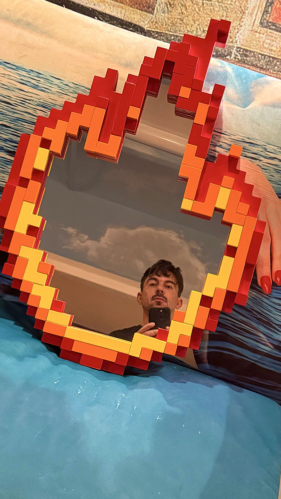 The creation of design mirrors for Seletti or interactive art mirrors maintains the same immersive and ironic flavor. Collaborations with international brands certify the universality of the language and above all its contemporaneity and trace innovative and unique perspectives as well as unprecedented in the world of art and design.